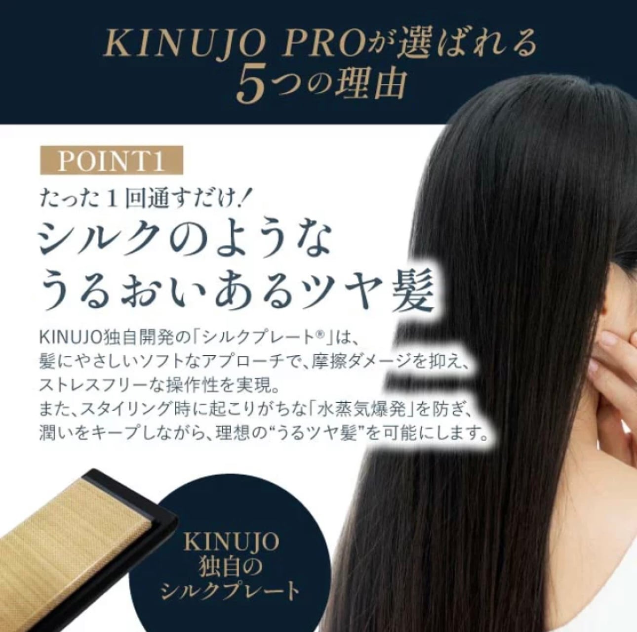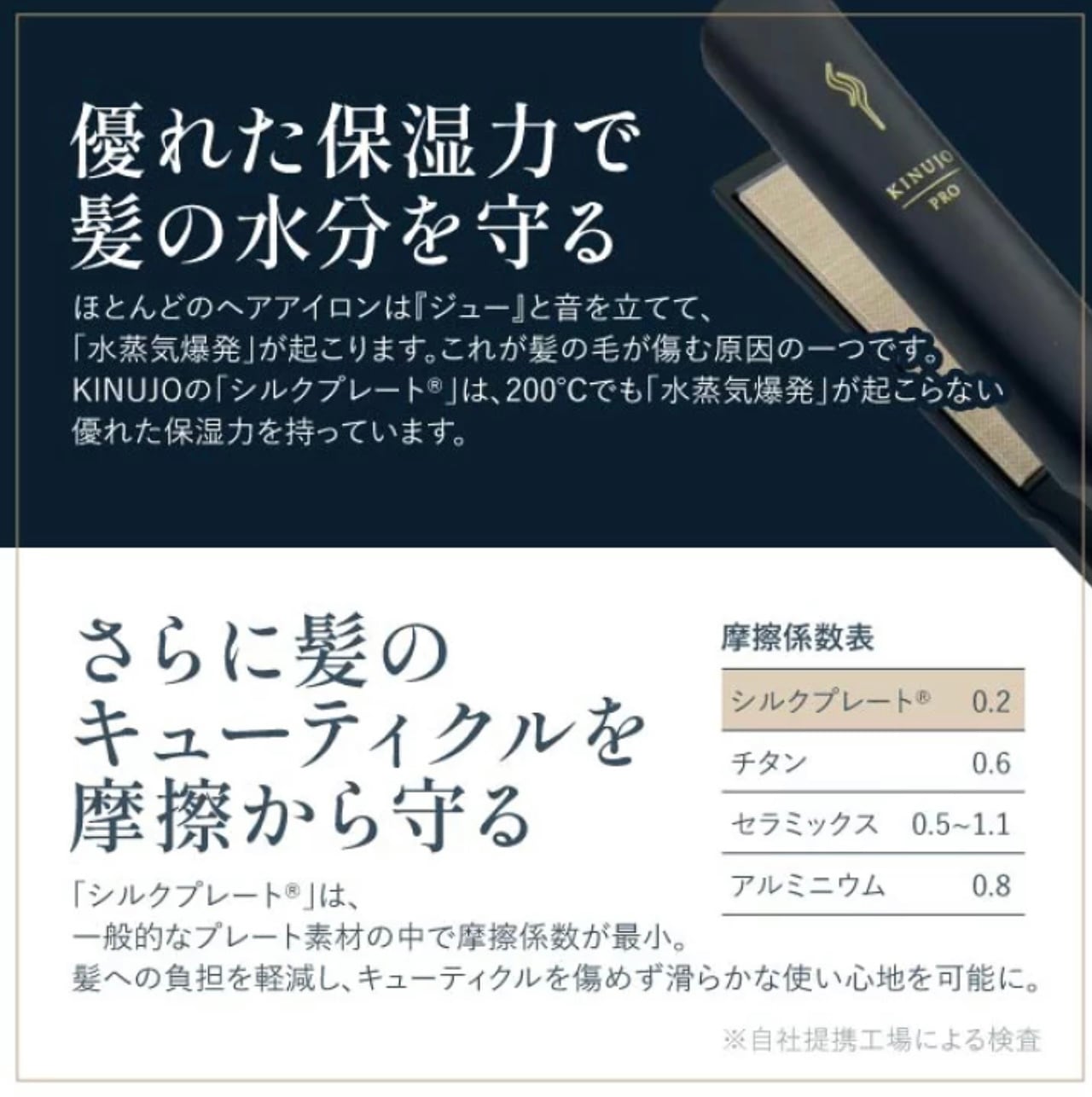 これが髪の毛が傷む原因の一つです。KINUJOの「シルクプレート」は、200℃でも「水蒸気爆発」が起こらない優れた保湿力を持っています。